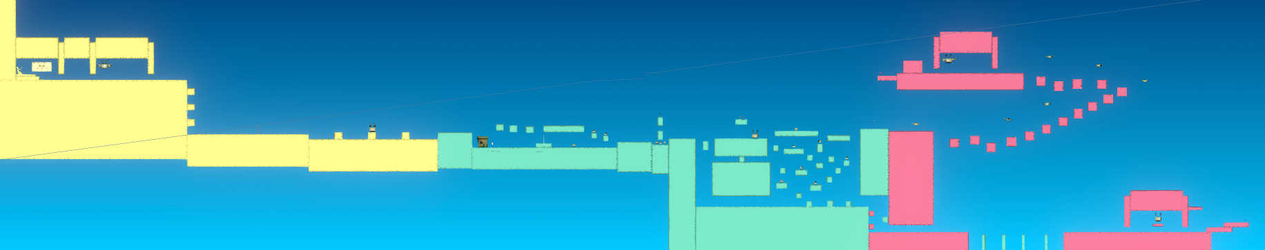 @euske This is the layout of the whole world. Nothing I'd really call a maze, pretty much just a straight line that splits to two on the right hand side. And you can do the two different paths in either order or you can also ignore the bottom one completely but that will make the final boss a lot harder.