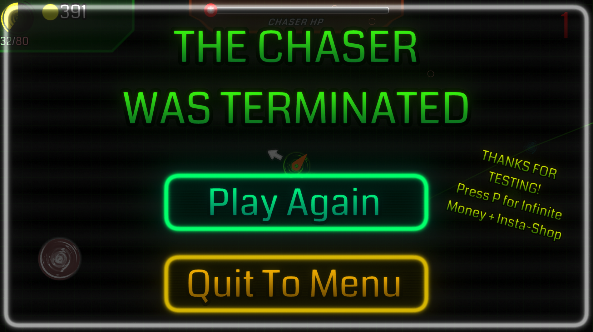 Mostly I'm looking for feedback on the UI and general balance feel of the game. Did anything feel too powerful? Close to useless? The Costs of Items are kindof just vague guesses at this point, but let me know if you felt that you weren't able to buy things at a rate you would have liked. I'm also cautious if the Chaser Upgrades are easy to read and keep track of or if they need to be moved somewhere else.
