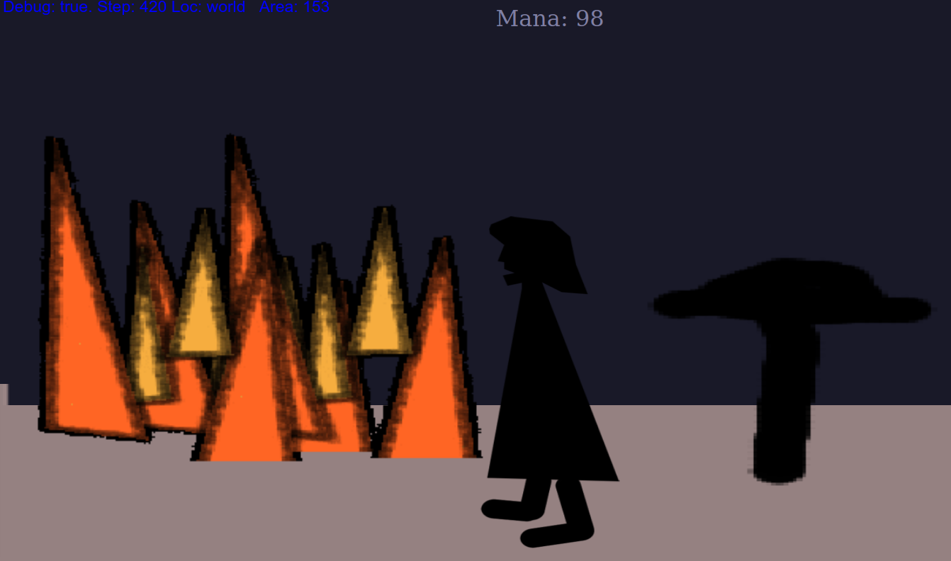 There is so much left to do. This is supposed to be some dame standing near a fire: