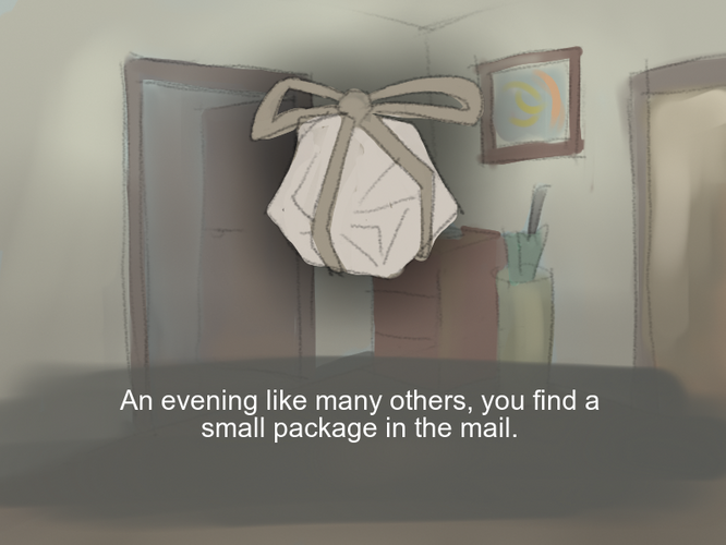 fullmontis • 8 years ago I thought I would never be able to write this post, but I actually finished something! A Strange Package, an HTML5 kinetic novel, is my submission for this edition of the Alakajam!